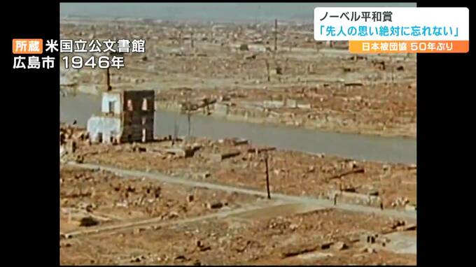 「この人は私について運転をしてくれた人。30年くらい。この人は被団協の前事務局長。この人たちも私と一緒に一生懸命やった人。核兵器廃絶、戦争はしないでということを引き継いできた。先人たちの思いを絶対に忘れないで、授賞式に臨む」