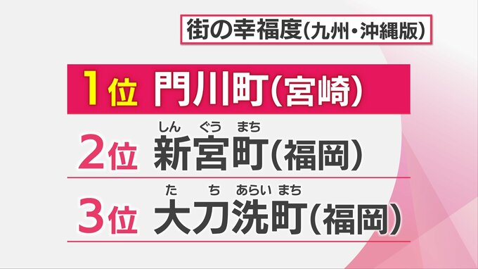 大手建設会社が、11日、「街の幸福度」と「住み続けたい街」の九州・沖縄版のランキングを発表しました。「街の幸福度」ランキング、3位は福岡県の大刀洗町、2位も同じく福岡県の新宮町。そして1位は、およそ200あ…