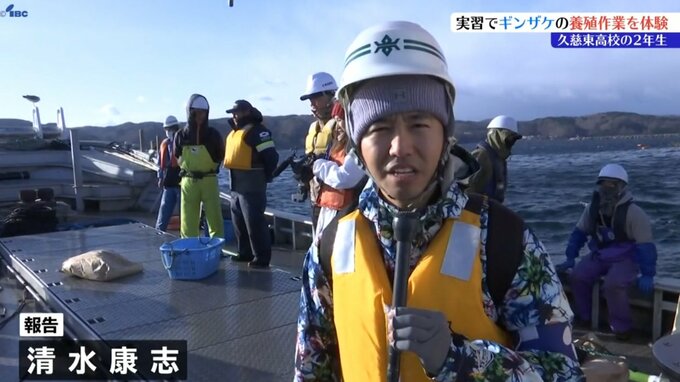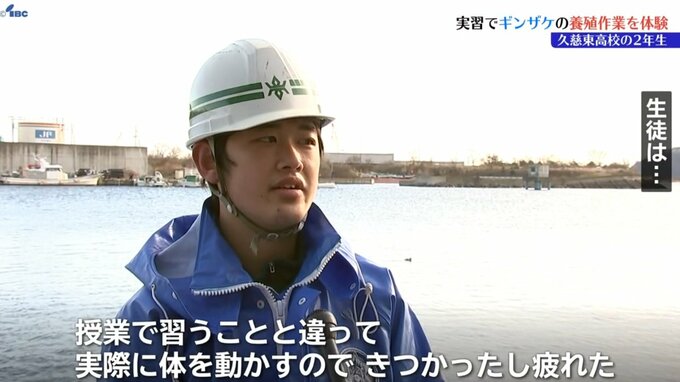 養殖ギンザケは2025年4月から7月にかけて、あわせて36万匹の水揚げを予定していて、生徒たちは久慈地区の主要漁業である定置網漁業に加え新たに導入されているギンザケ養殖にも理解を深めていました。