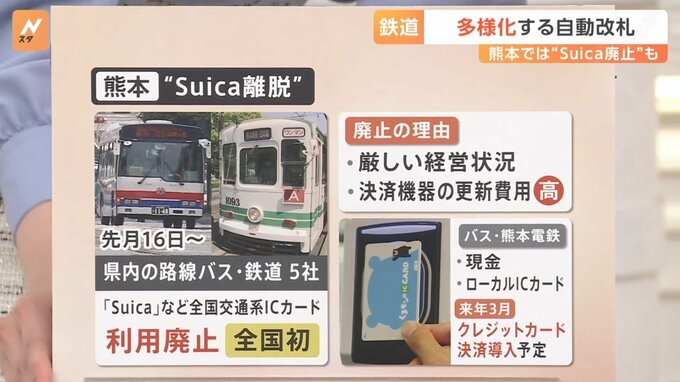 一方、熊本では11月16日から県内の路線バスと鉄道5社でSuicaなどの全国交通系ICカードの利用を廃止しました。これは全国で初めてのことです。