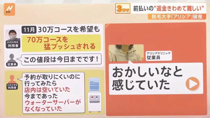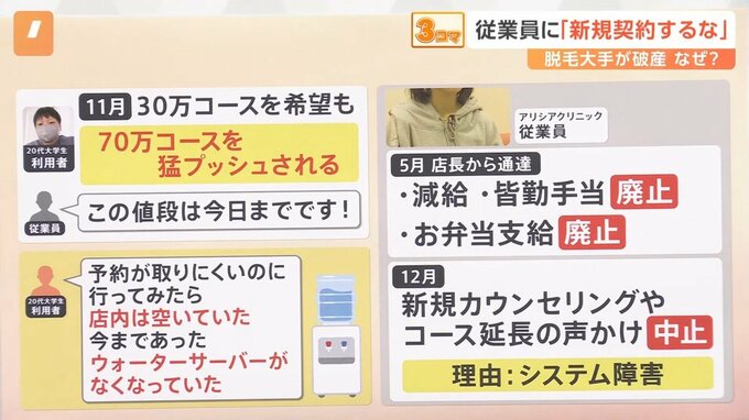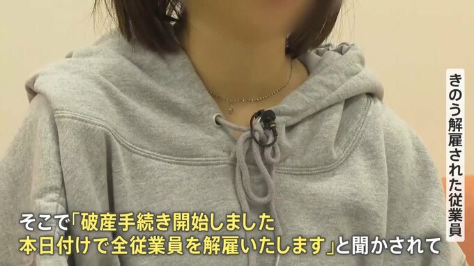 「(9日)施術部屋に全員集められて、1個のタブレットをみんなで見る感じで。そこで『破産手続き開始しました。本日付けで全従業員を解雇いたします』と聞かされて。