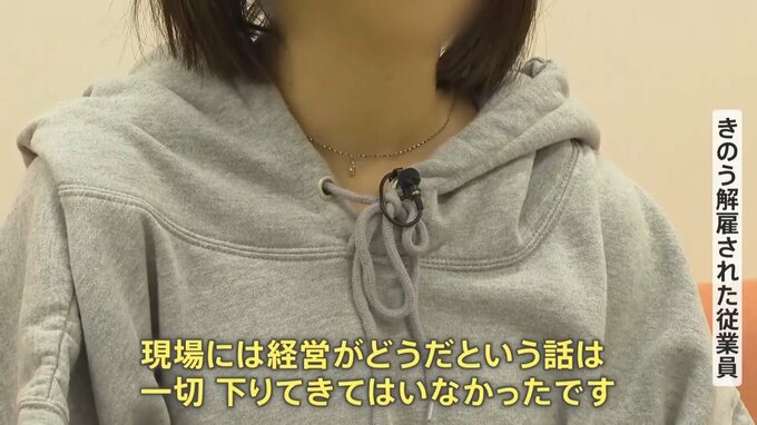 責任者から聞いていたのは、『今週末にオーナーが決まるか、倒産するかが決まるからそれまでは待っていて欲しい』というような内容だった。それよりも早く解雇を言い渡されてしまって、本当に従業員もびっくりしています」