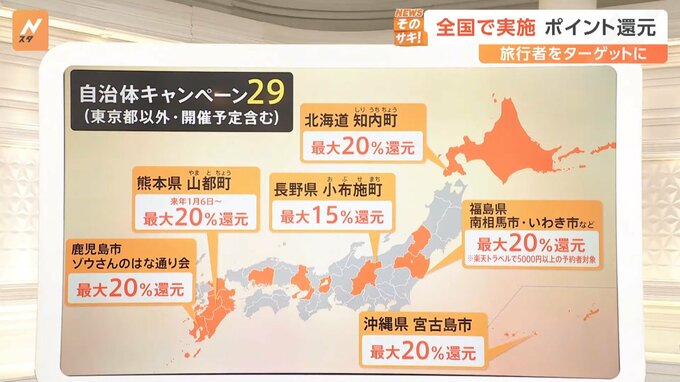 東京都以外にも全国の自治体で、29のキャンペーンがあります。