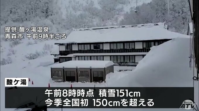 青森市の酸ケ湯では、雪が降り積もりました。12日午前8時の時点で積雪が151cmに達し、今シーズン、全国で初めて150cmを超えました。