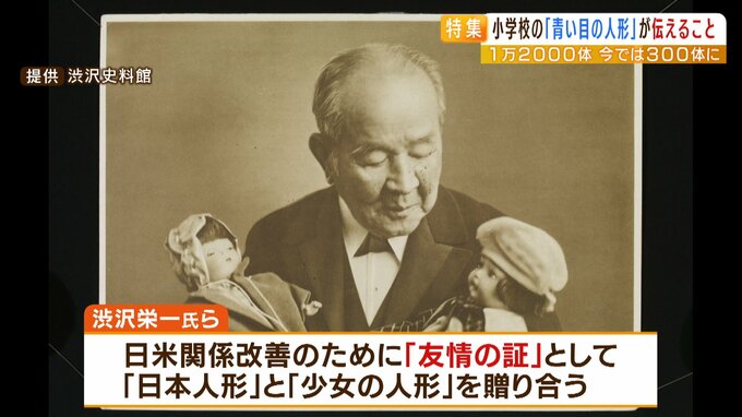 実はこの人形、日本の歴史を静かに見つめてきたのです。今から95年前の1927年、暗雲垂れ込めていた日米関係。その改善のために渋沢栄一らが動き、日本からは日本人形、アメリカからは少女の人形が“友情の証”として贈られ、全国の小学校などに配られました。