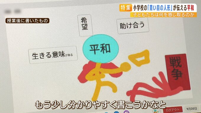 「ガラスケースの外から見たら怖い人形かなって思っていたけれど、教頭先生の話を聞いていろんな思いの詰まった人形やねんなと思いました」