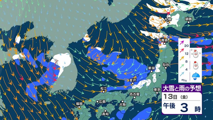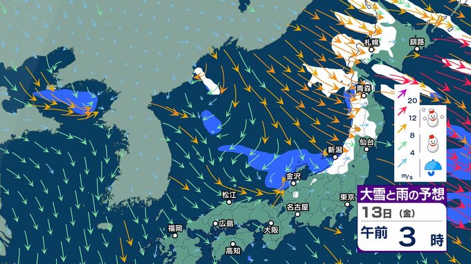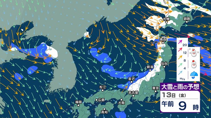日本海側は大雪警戒へ…週末は上空に強烈な寒気流れ込む【2週間天気】12月下旬のクリスマス前も冬の嵐に【3時間ごと 雪と雨のシミュレーション】 チューリップテレビ 2024年12月12日(木) 17:17 国内 暮らし・マネー 大雪と雨のシミュレーション 13日(金)