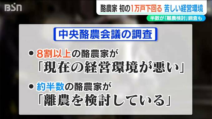 さらに中央酪農会議が行った調査では8割以上の酪農家が「現在の経営環境が悪い」と回答。またおよそ半数が「離農を検討している」としています。
