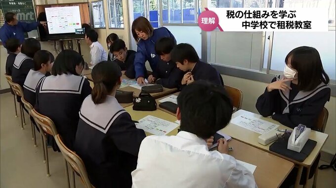 税の仕組みについて理解を深めてもらおうと、宮崎市の中学校で租税教室が開かれました。この租税教室は、宮崎法人会青年部が宮崎市内の小学校から高校までを対象に開いているもので、12日は、久峰中学校の3年生お…