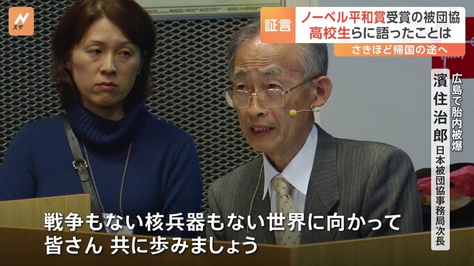 ノーベル平和賞を受賞した日本被団協の代表団はつい先ほどノルウェーを出発し、帰国の途につきました。これに先立ち、被団協の被爆者がオスロの高校に足を運び、若者たちに被爆の実態を語りました。記者「被爆者3…