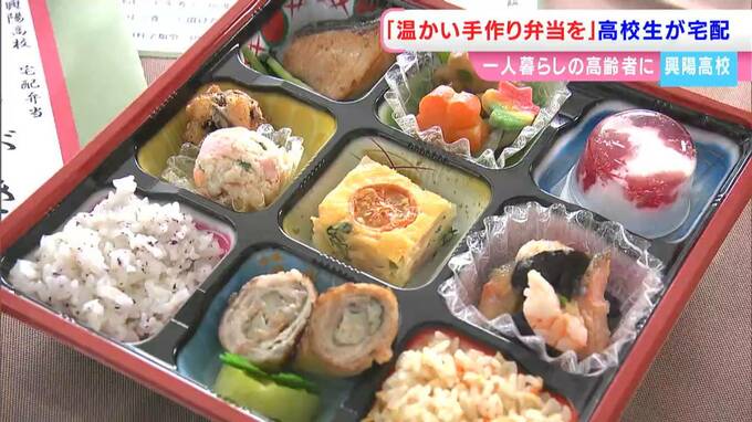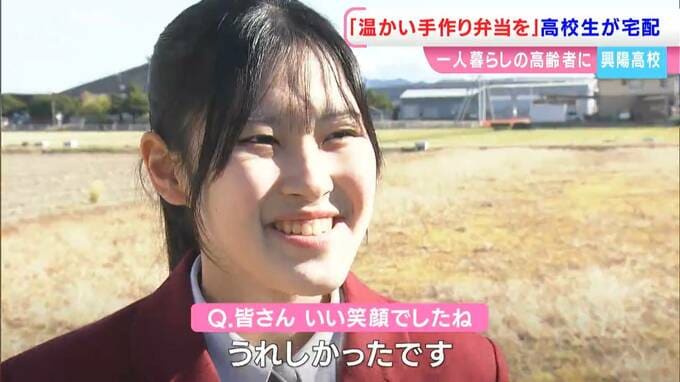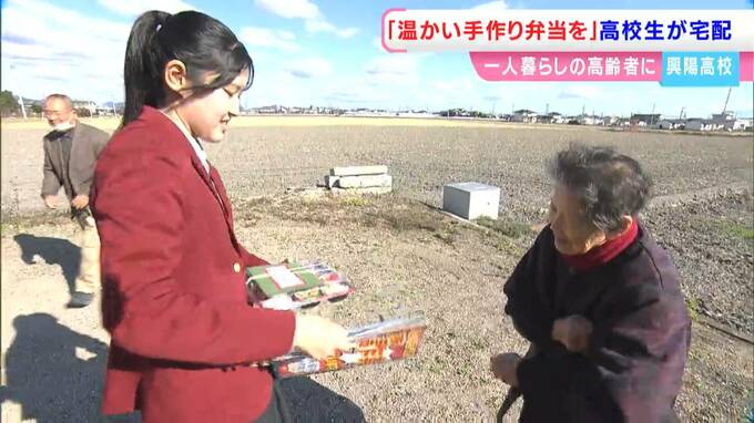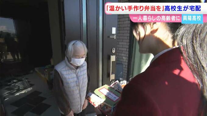 さっそく生徒たちは地域に住む一人暮らしの高齢者に弁当を届けていきます。この日を楽しみにしていて、中には玄関の前で待っている人もいました。
