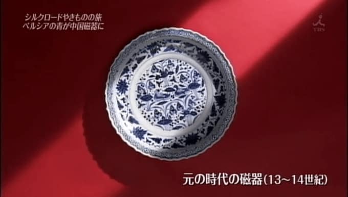 コバルトブルーの技法はさらにシルクロードを東へと伝播していき、中国の磁器と出会います。そして元の時代に、白い磁器にコバルトを使って青い絵付けをした「青花」と呼ばれる焼き物が誕生しました。