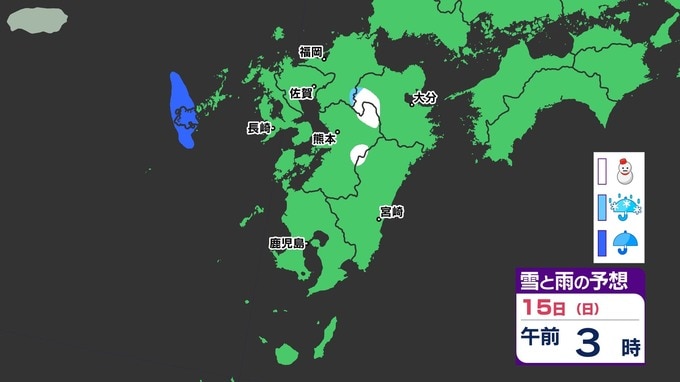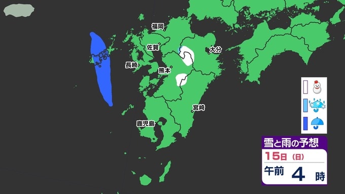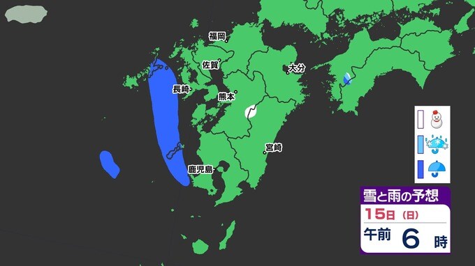 九州北部地方と鹿児島県薩摩地方に【雪に関する気象情報】発表 13日(金)~15日(日)雨と雪のシミュレーション 南日本放送 2024年12月13日(金) 11:30 国内 天気 雨と雪のシミュレーション《15日(日)0時~16日(月)0時》 16日(日)は、明け方までと昼過ぎ以降、雪の予想が出てきます。