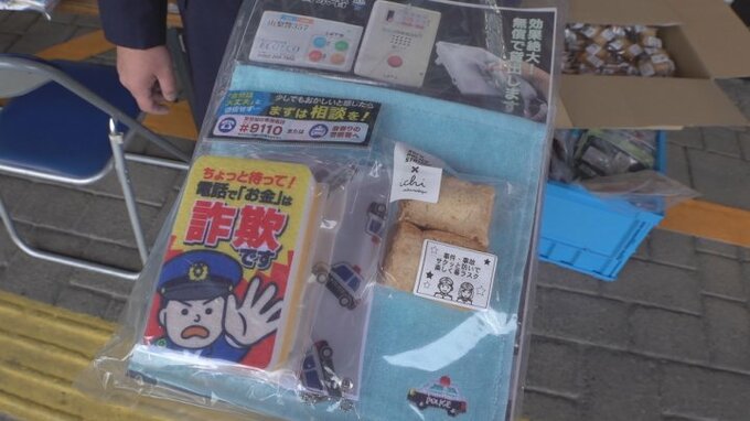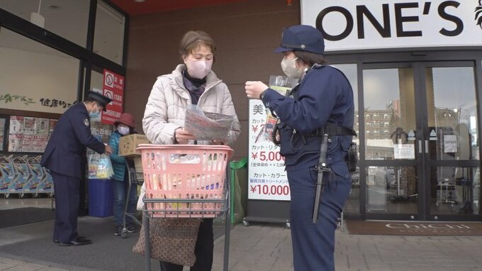 13日は甲府市徳行のスーパーで警察官と関東財務局の職員など あわせて6人が、詐欺被害に注意を呼びかけました。