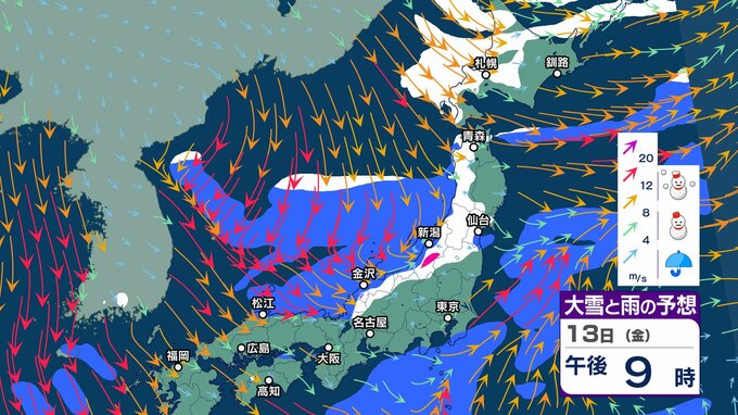 寒波の影響でNEXCO中日本(ネクスコ中日本)13日から16日にかけて冬用タイヤ装着かチェーン携行呼びかけ【高速道路別の降雪予測】万が一に備えての安心グッズ【雨雪シミュレーション 3時間ごと】 チューリップテレビ 2024年12月13日(金) 18:00 国内 天気 大雪と雨のシミュレーション 13日(金)