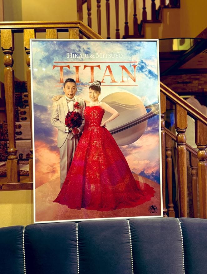 Xで披露されたポスターには、「HIKARI & MITSUYO」「TITAN」と、まるでハリウッド映画のような壮麗なタイトルが掲げられ、極彩色の宇宙の中に浮かぶ土星を背景に、衛星「タイタン」に立つ太田夫妻の姿が写っています。