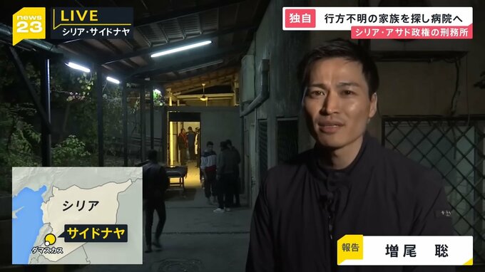 ここはダマスカス市内の病院です。私の後ろに見えるのは、遺体を安置する部屋です。ここには、アサド政権崩壊後に様々な場所で見つかった遺体が多く集まっています。