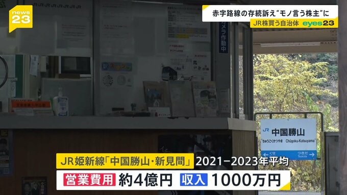 姫新線は「中国勝山・新見間」でかかった営業費用約4億円に対し収入は1000万円。収入の40倍もの経費がかかる“赤字路線”です。