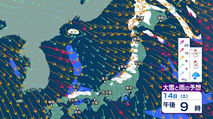 【気象情報 14日午前9時半更新】冬型の気圧配置が続き寒気流れ込む 北陸は昼までや落雷、竜巻などの激しい突風、ひょうに注意【大雪と雨のシミュレーション】太平洋側はおおむね晴れるも冷たい北風が吹き空気は乾燥 チューリップテレビ 2024年12月14日(土) 09:34 国内 天気 大雪と雨のシミュレーション 14日(土)