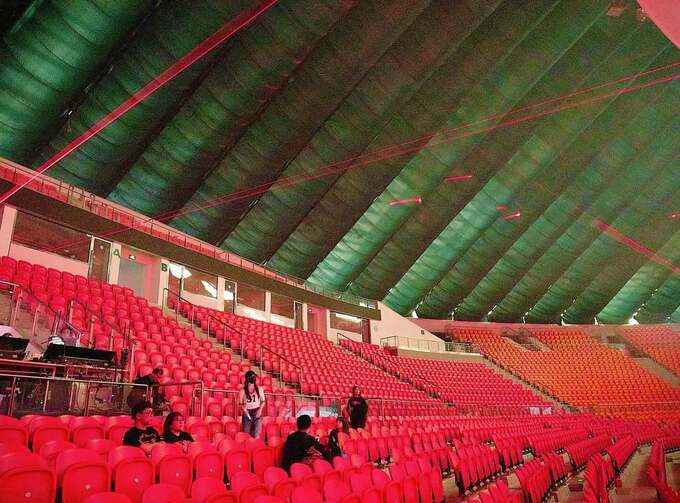 時にはステージ上のみならず、何万人単位で収容できそうな観客席側に回って、観客目線でステージングをチェックしている様子も。いずれの表情も冷静な真剣さが伝わってきます。