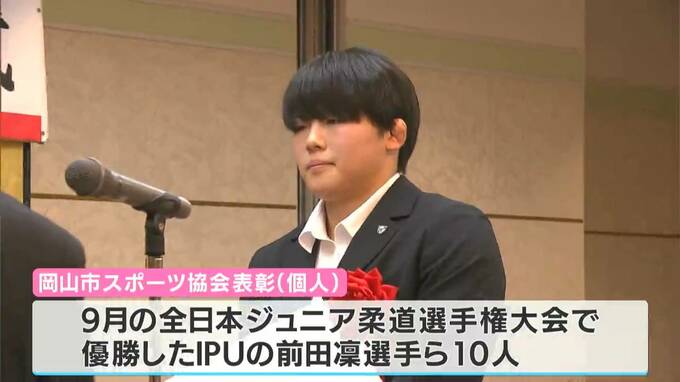 個人の表彰では全日本ジュニア柔道選手権大会女子70kg級で優勝したIPU・環太平洋大学の前田凛選手ら10人が。