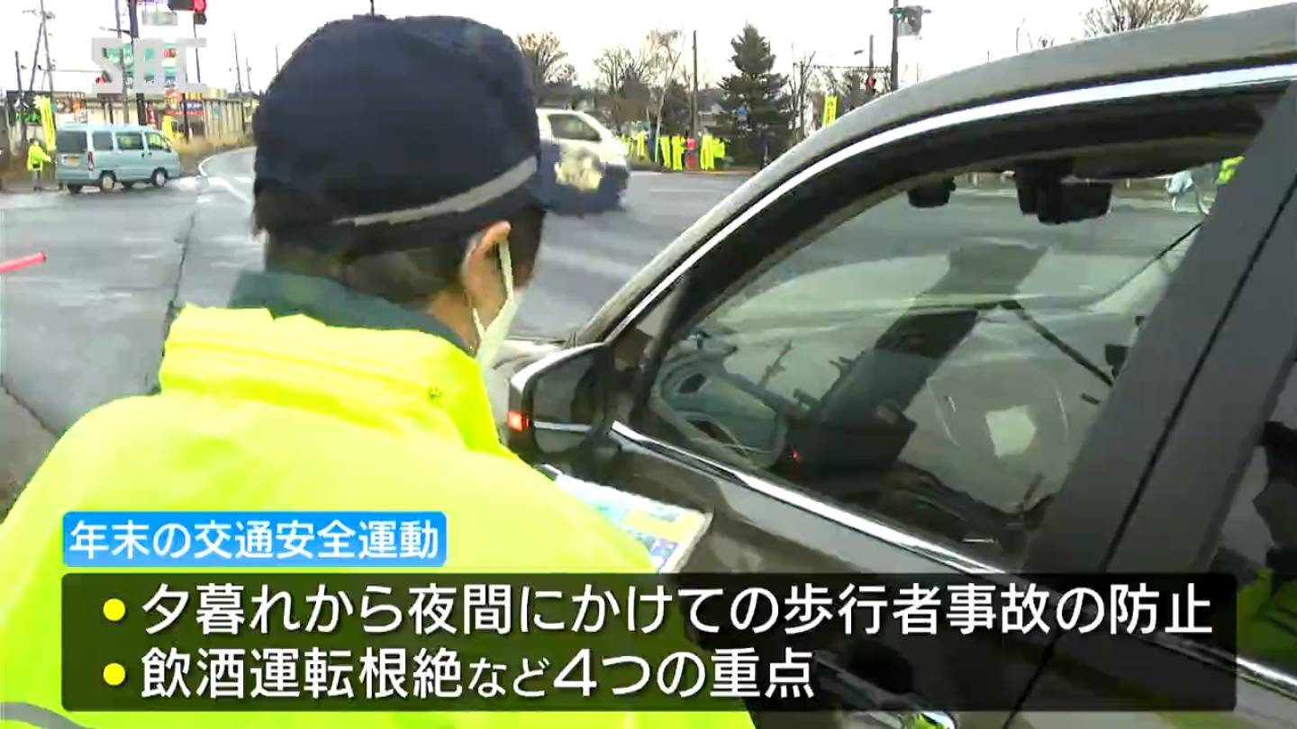 15日から始まった年末の交通安全運動では、夕暮れから夜間にかけての歩行者事故の防止や、飲酒運転の根絶など、4つの重点があげられています。