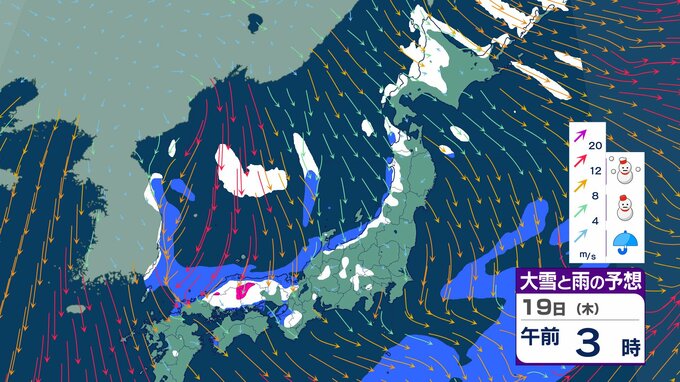 あさって18日頃から再び強い寒気が流れ込む【3時間ごと 雪と雨のシミュレーション】日本海側は山沿い中心に積雪が急増も【2週間天気】太平洋側は空気の乾燥が続き火の取り扱いに注意 チューリップテレビ 2024年12月16日(月) 16:18 国内 天気 大雪と雨のシミュレーション 19日(木)