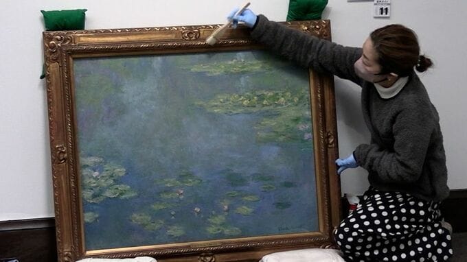 モネが描いた睡蓮が壁から降ろされます。名画にたまったほこりなどの汚れを落とす年末恒例の大掃除です。