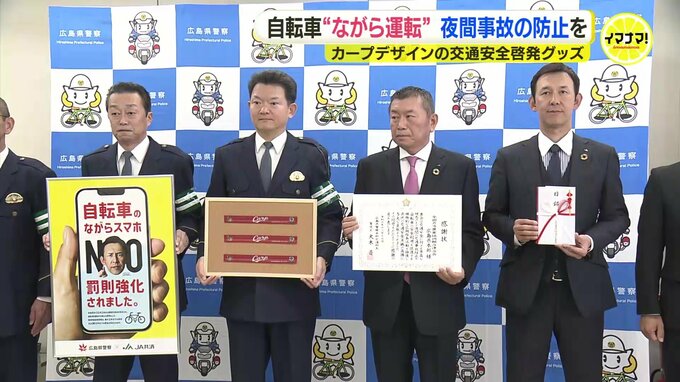 広島カープのOBを起用したポスターなどの交通安全啓発グッズが、広島県警に寄贈されました。JA共済広島県本部から寄贈されたのは、交通安全を啓発するポスター1000枚とリストバンド1万9000個です。ポスターは「JA…