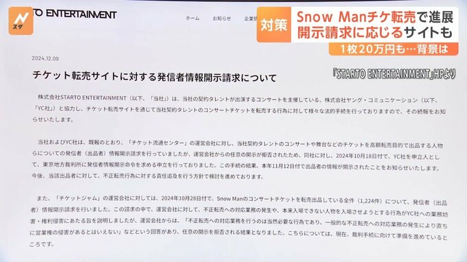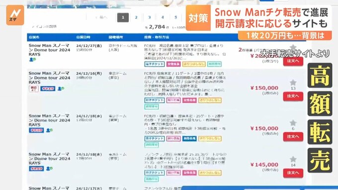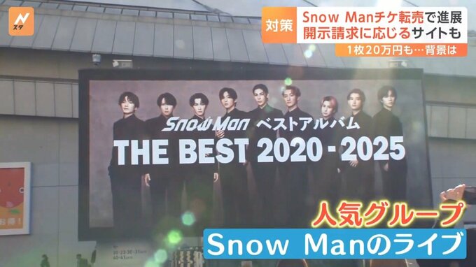 人気アイドルグループ「Snow Man」のライブチケットが高額で転売されている問題。所属事務所が転売者の情報開示請求に踏み出しました。一部の転売サイトがこれに応じるなど動きが出始めています。背景には何があるのでしょうか。
