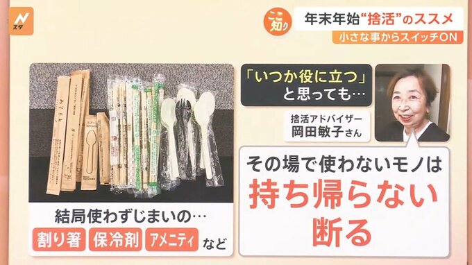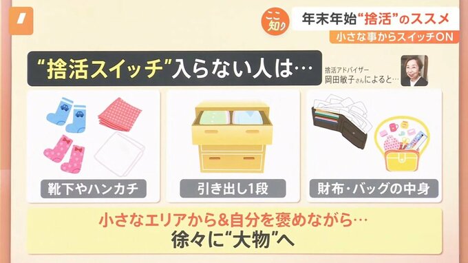 不要なものを整理する“捨活”で気持ちよく新年を迎えたいですが、なかなかできない。なので、小さいことからで良いということを、捨活アドバイザーの岡田敏子さんに教えていただきました。