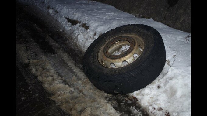 16日、北海道平取町で、走行中のトレーラーのタイヤが外れ、反対車線を走っていた乗用車に衝突しました。