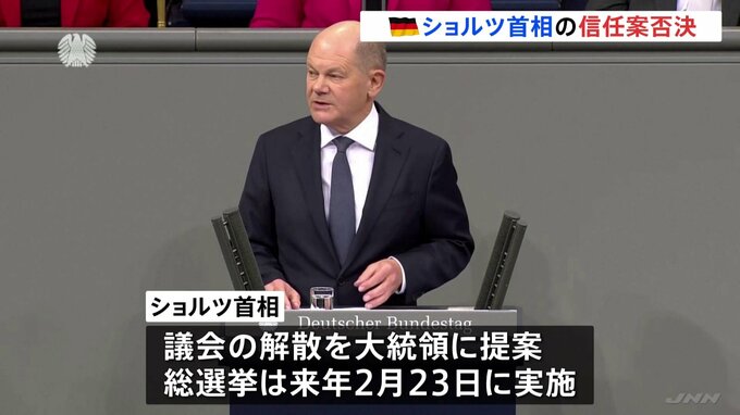 ドイツの連邦議会でショルツ首相の信任投票が行われ、野党側の反対多数で否決されました。総選挙が実施されることになります。ドイツの下院にあたる連邦議会で16日、ショルツ首相の信任決議案の採決が行われ、数で…