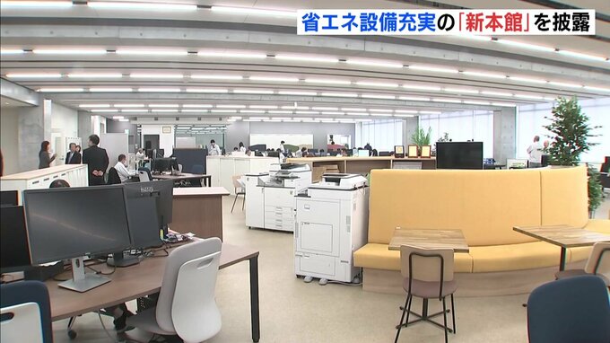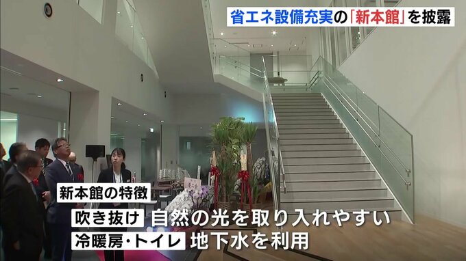 ダイカスト製品などを製造する広島県府中市の企業、リョービはエネルギー効率の良い「新本館」を関係者らに披露しました。
