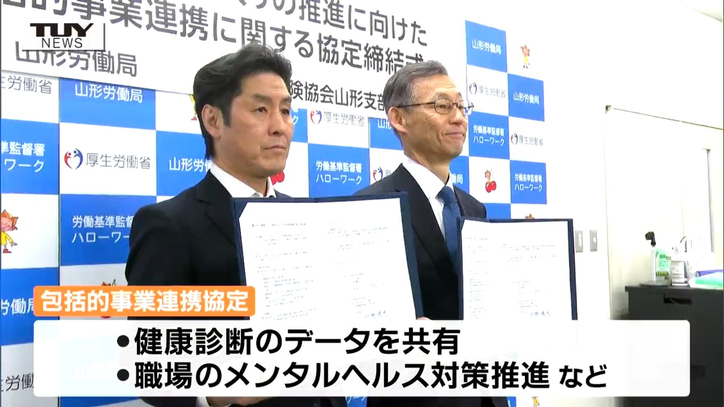今回、山形労働局と健康保険事業を運営する全国健康保険協会・協会けんぽの山形支部が結んだのは、労働者の健康づくりを推進するための協定です。