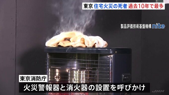 東京消防庁は、今年、都内で住宅火災によって死亡した人が72人にのぼり、過去10年で最多となったことを発表しました。「たばこ」による出火で死亡した人が16人と最も多く、「ストーブ」による出火は5人となってい…