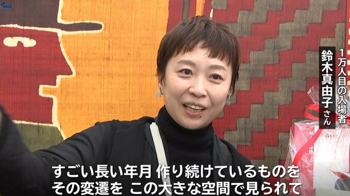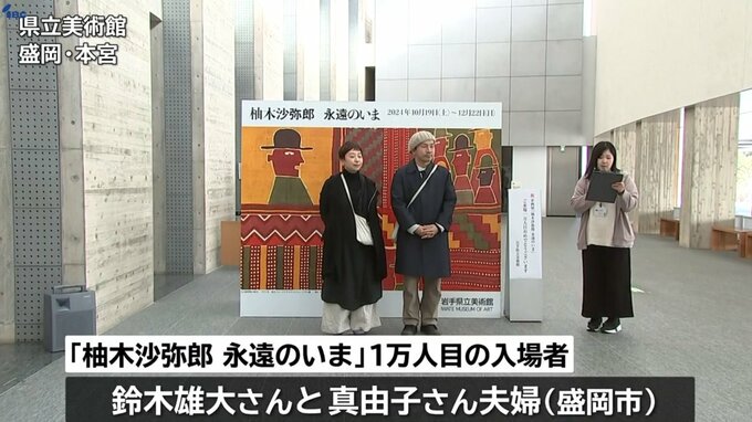 現在、県立美術館で開催されている企画展「柚木沙弥郎永遠のいま」の1万人目の入場者となったのは、盛岡市の鈴木雄大さんと真由子さんの夫婦です。