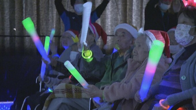 施設の高齢者に光るスティックが配られました。用意したのは大滝さん。