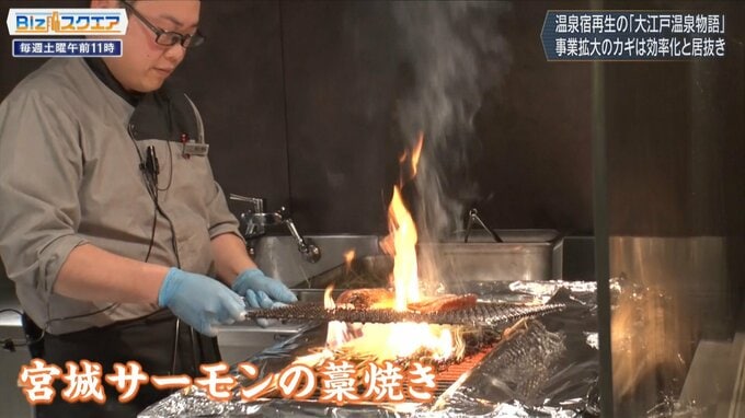 バイキングでは地元・三陸産のカキをつかったカキフライや宮城サーモンの藁焼きなどが並ぶ。