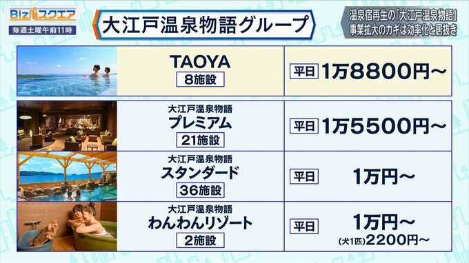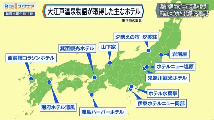 大江戸温泉物語は、鬼怒川観光ホテルの他にも、栃木県のホテルニュー塩原や、大阪府の箕面観光ホテルといった老舗ホテルを買収し、再び人気ホテルへと生まれ変わらせた。