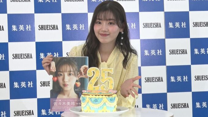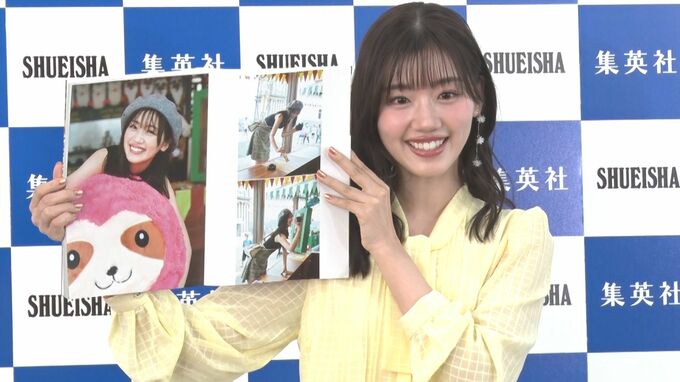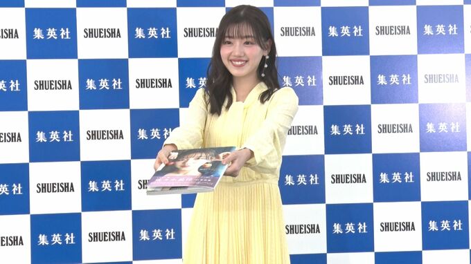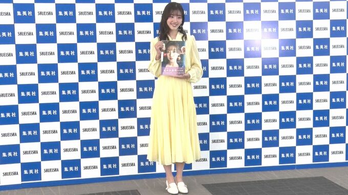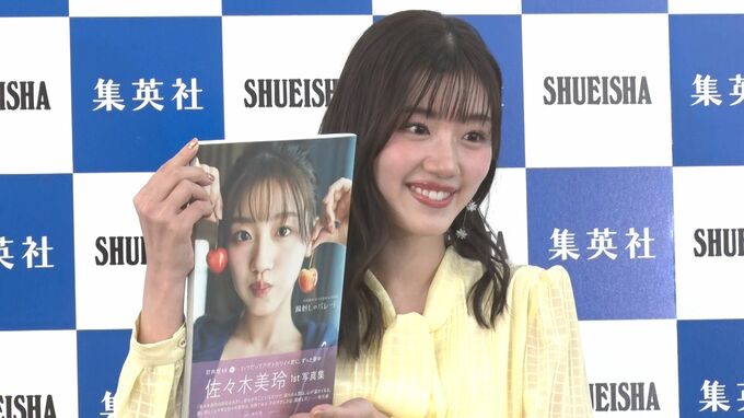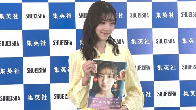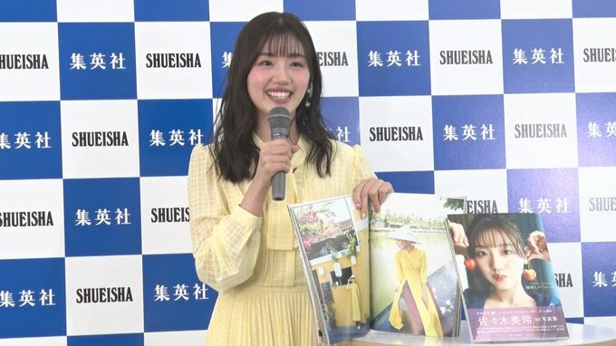 佐々木さんは、“すごくうれしいです。きょうもウキウキで来ました。皆さんにこの1冊を見て、たくさん笑顔になっていただけたらなと思います。ずっとずっとこの日を待っていました。書店にワーッと並んでいて、すごくうれしい気持ちになりましたし、皆さんに早く見てもらいたいなという気持ちです”と、誕生日に念願の写真集を発売できる喜びを語りました。