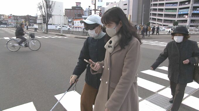 目の不自由な人にとって、道路の横断は簡単なことではありません。こうした人に、スマートフォンを使って信号の状況を伝えるシステムが、福島県内で導入されました。