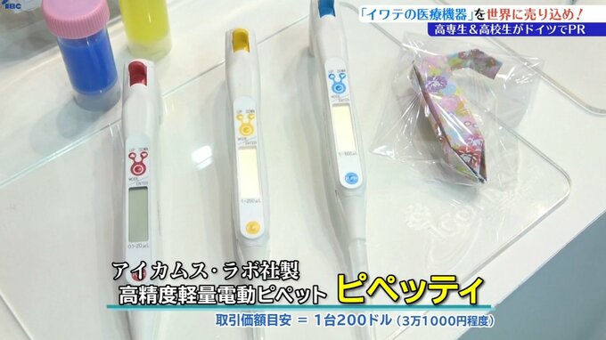 2人が売り込んだのは盛岡の医療機器メーカー、アイカムス・ラボの電動ピペット。