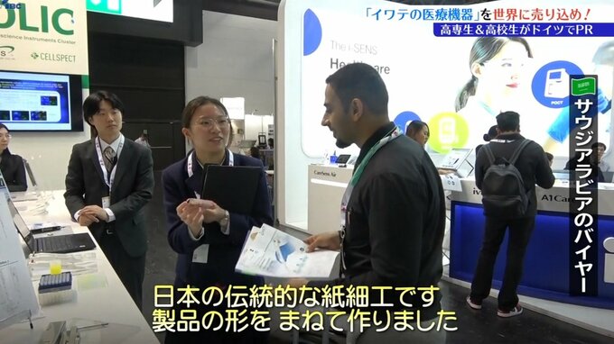 2人は、手動タイプに比べ省力化が図れるメリットを強調するにとどまらず、折り紙や書道を披露するなどして、「和のおもてなし」の要素も織り込み、世界のマーケットに向き合いました。