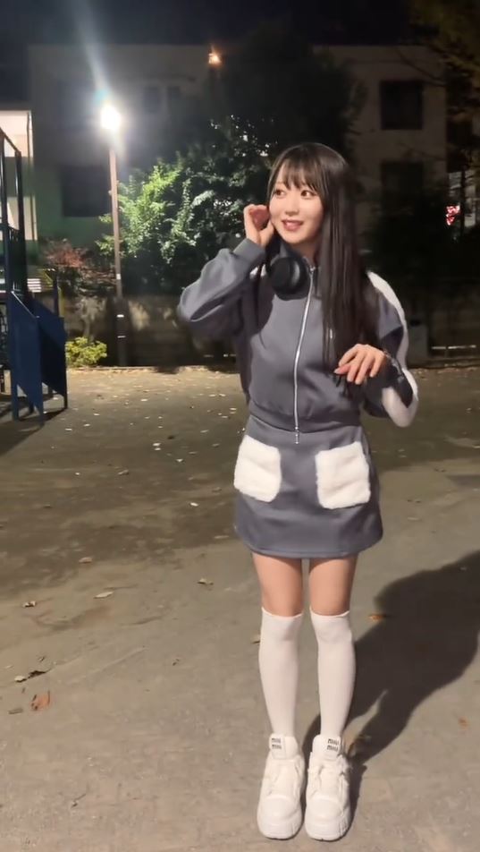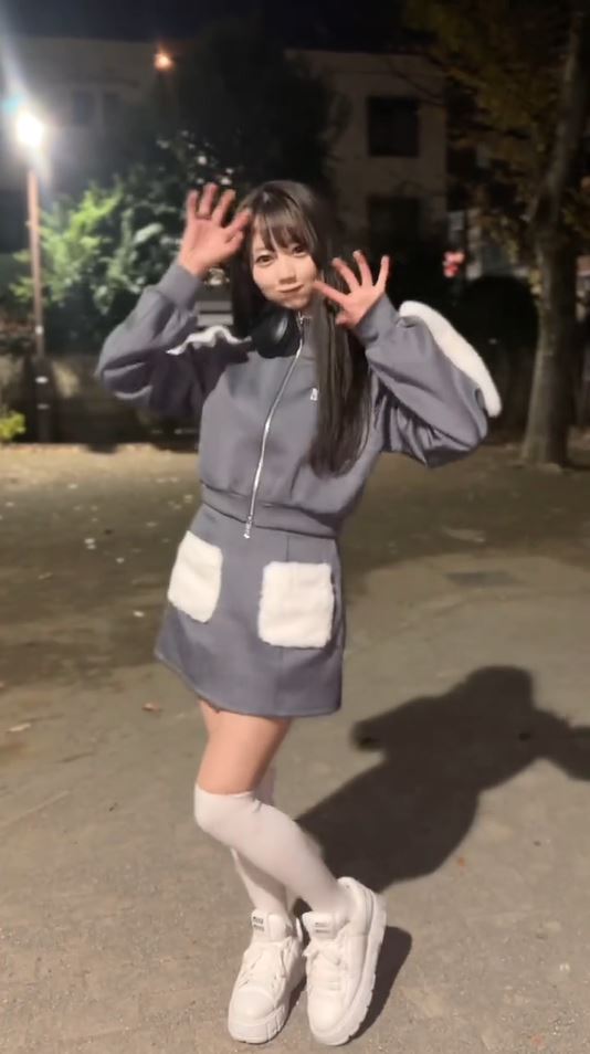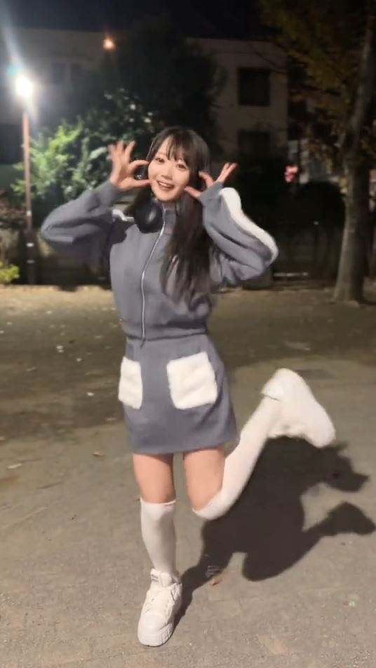 深夜の公園と思われる真っ暗な屋外で、大谷さんは「#B小町 さんの #POPIN2 」に合わせて軽快にダンス。表情も視線もくるくると自然に変わり、そのままステージに上げてOKなほどのクオリティで魅せこみます。