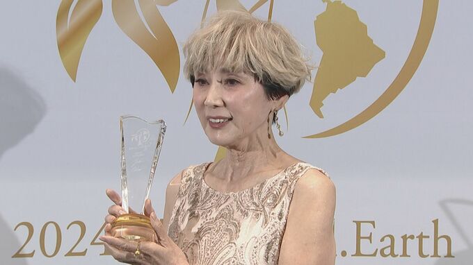 女優の秋野暢子さんが「2024ミセス・グローバル・アース日本大会」記者発表会に、白のノースリーブドレスで登場し、会見に応じました。