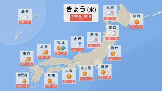上空の寒気が強く、気圧の谷も通過する影響で大気の状態は非常に不安定になりそうです。日本海側では雪でなく雨が降るところもありますが、降り方が強まるおそれもあります。北陸では平地を中心に雨が降り、土砂災害への警戒が必要です。