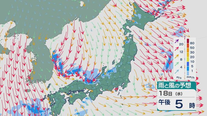 18日の北陸の上空約5500メートルの寒気は-30度以下 発達した雲が流れ込み大雨に 土砂災害に警戒を 雨と風シミュレーション 北陸放送 2024年12月18日(水) 13:21 国内 19日にかけての雨や風の予想です。18日は夕方にかけて北陸では雨が断続的に降りそうです。 日本海側の各地では山地を中心に雪が降るでしょう。