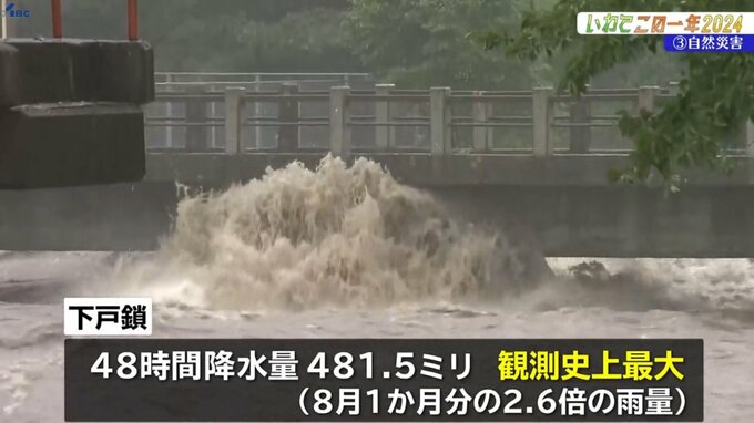 久慈市下戸鎖では48時間の降水量が481.5ミリとなり、観測史上最大を記録。