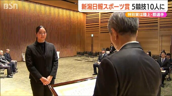 全国大会などで優れた成績をあげた選手と指導者を表彰する『第48回新潟日報スポーツ賞』の表彰式が18日に行われました。